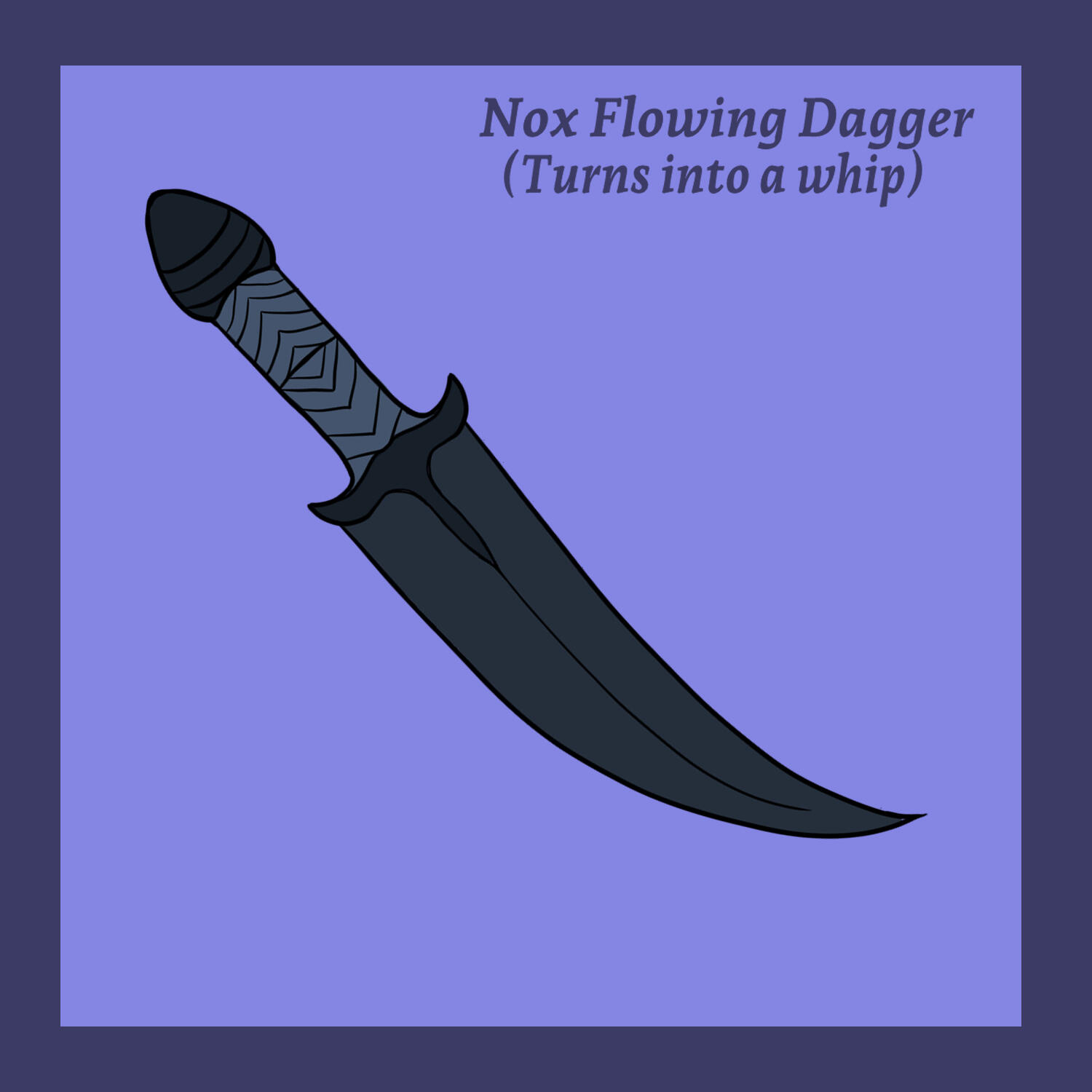 • His weapon is a Nox Flowing Dagger. (Similar to the other Nox weapons)